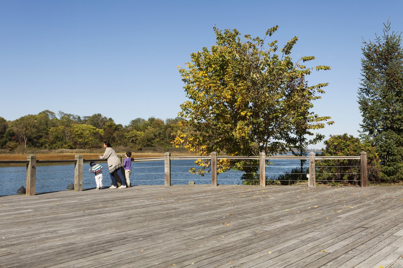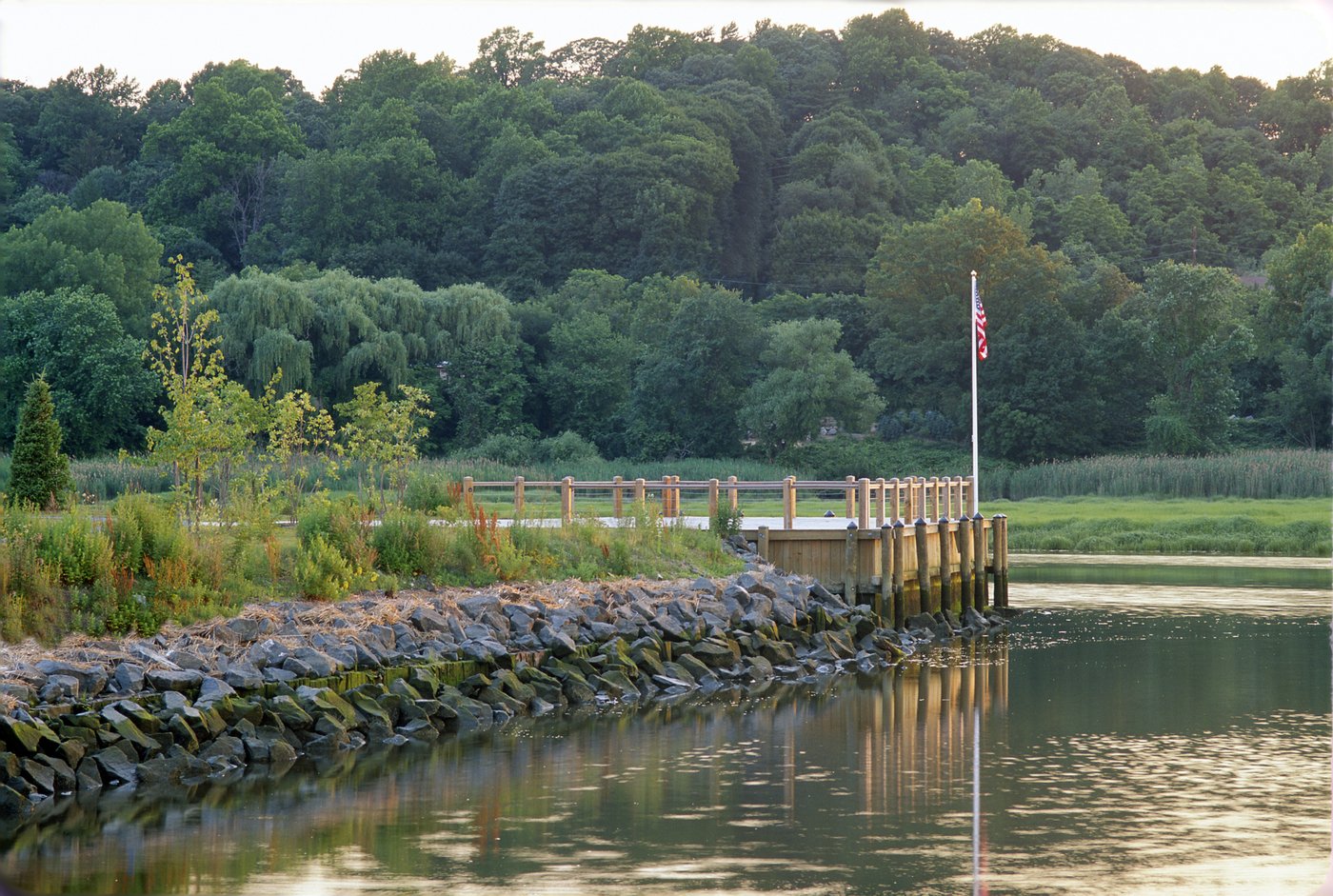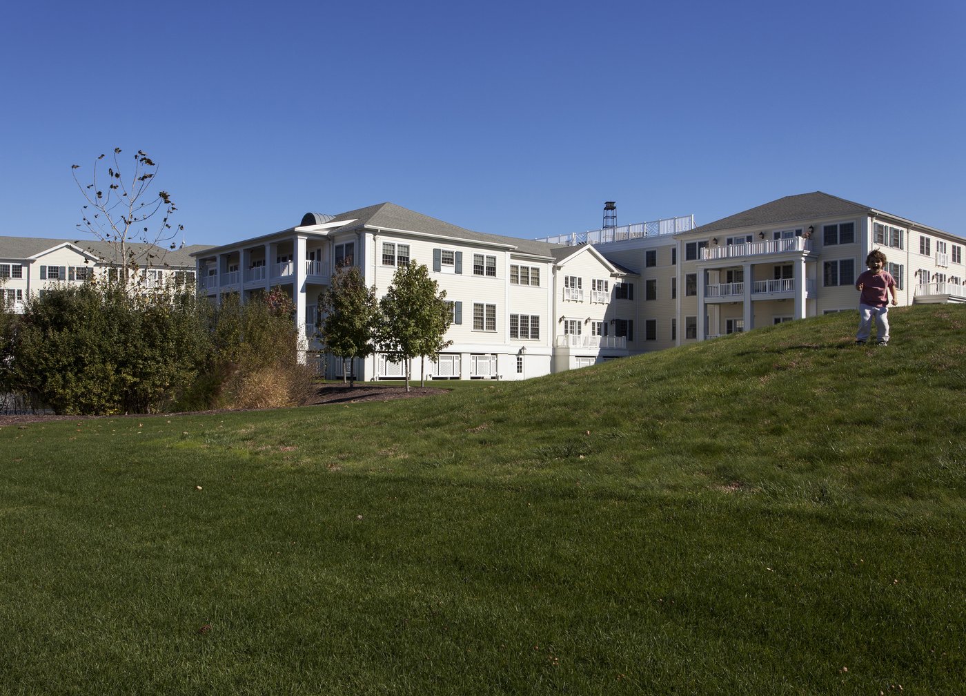 Situated on 11 acres of a former brownfield, this premier senior independent living residence on Hempstead Harbor features a colonial-style building articulated into wings to offer its 215 apartments views into landscaped courtyards and out to the harbor. A five-acre public waterfront park that features three ponds further enhances resident experience. One pond is spring-fed, and two serve as stormwater mitigation and biofiltration. The 1,400-foot-long shoreline is restored to an intertidal wetland accessible by a path and elevated wood promontories.