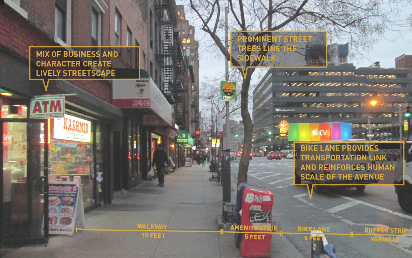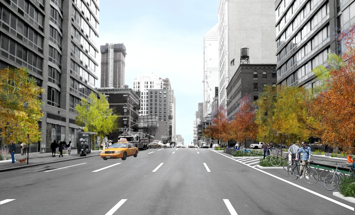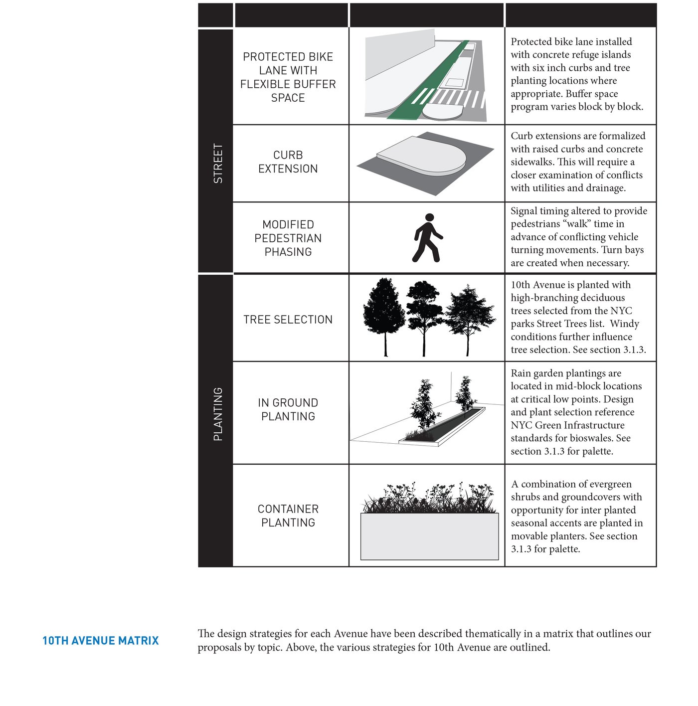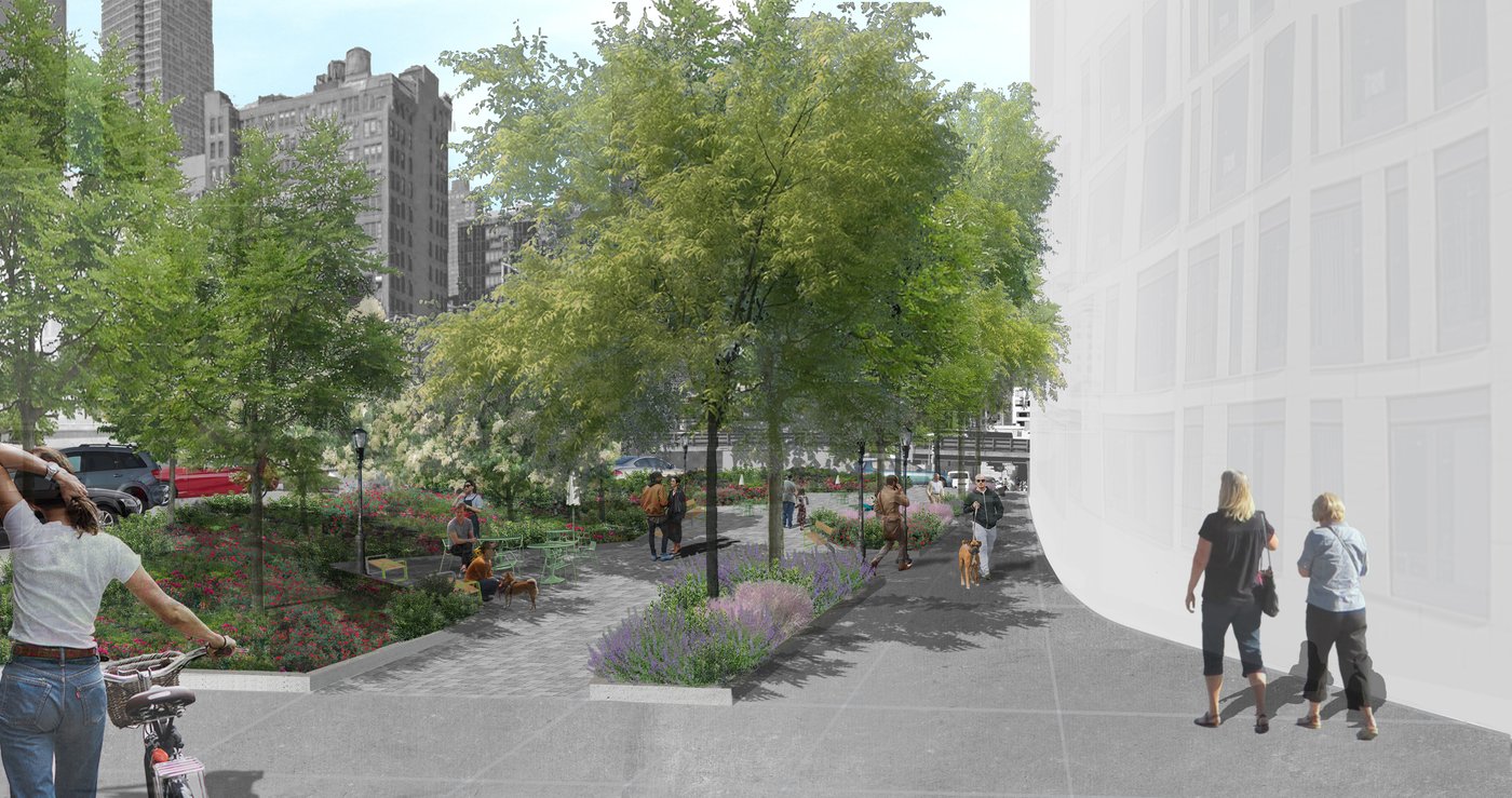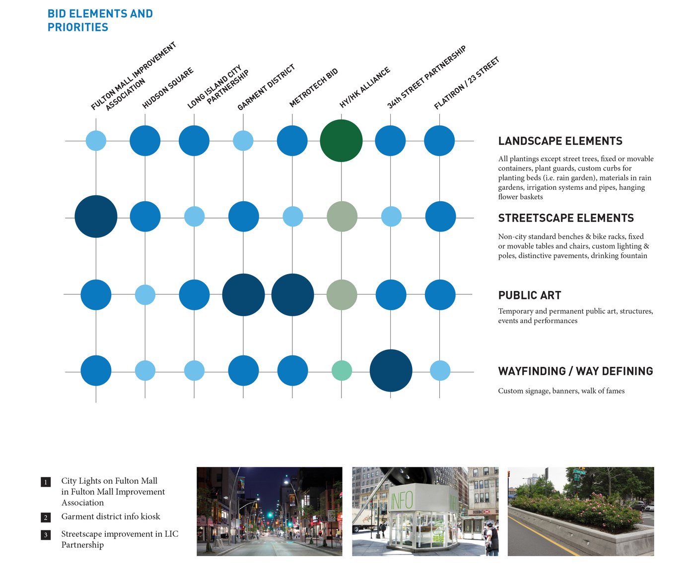 Hell's Kitchen/Hudson Yards is a new business improvement district propelled by dramatic changes within its boundary. MNLA's master plan and tactical transformations stitch together a neighborhood in flux. Deeply impacted by the Lincoln Tunnel, Port Authority bus terminal, and new construction, the public realm is confusing and hazardous. Design solutions target excessive roadway widths, poor signage, overhead roadways, and disconnected verges for improvements. The comprehensive plan offers site-specific designs for wayfinding, the creation of new public places, protected bike lanes, and traffic calming.